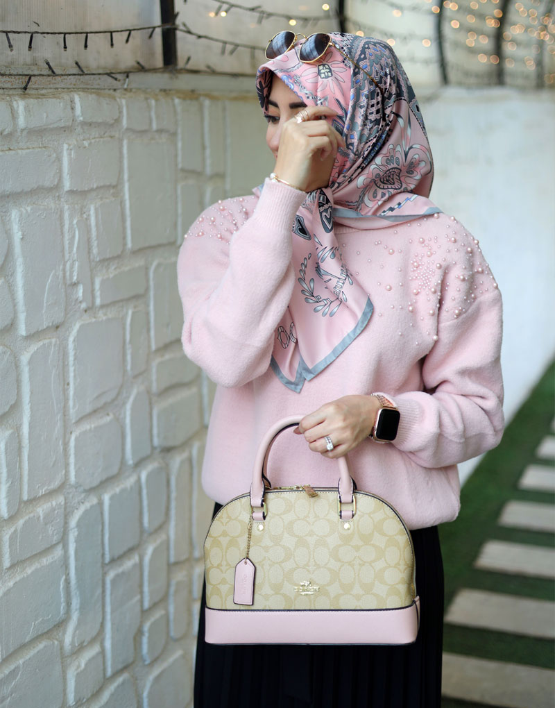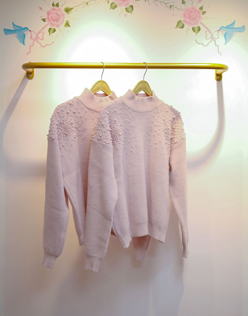 در قسمت سرشانهها مرواید طراحی شده که ظرافت و زیبایی خاصی به بافت بخشیده است.