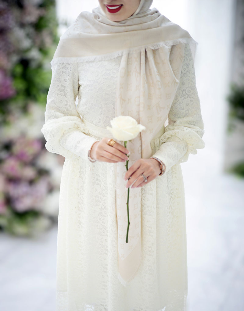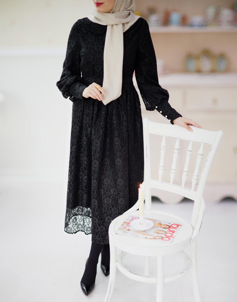 پیراهن طرح ماه از بهترین کرپ فلورانس اندونزی با ترکیب دانتل فرانسوی دوخته شده است.