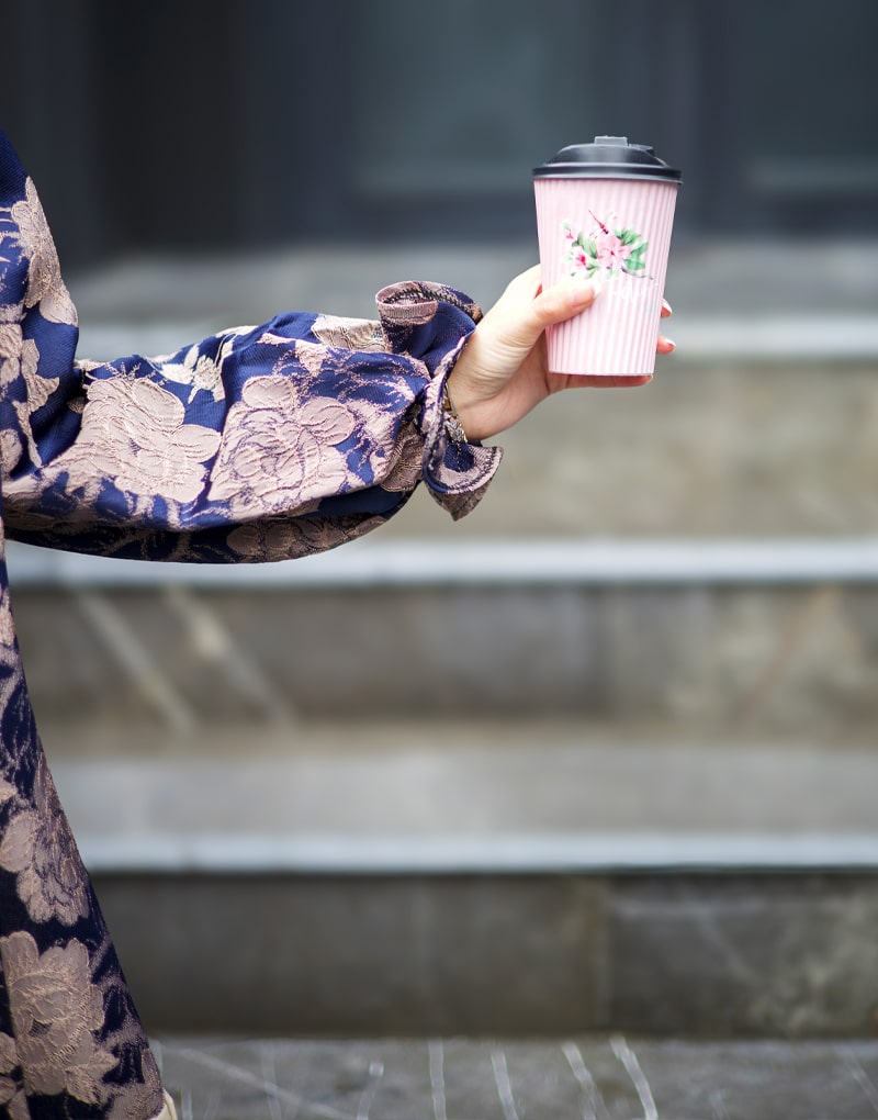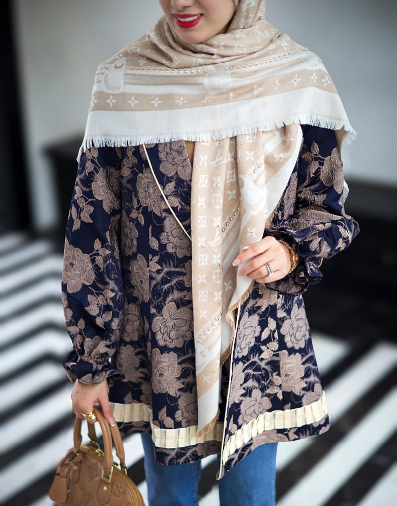 حاشیه، ربان و مغزی کار شده و طراحی کت را منحصر به فرد میکند.